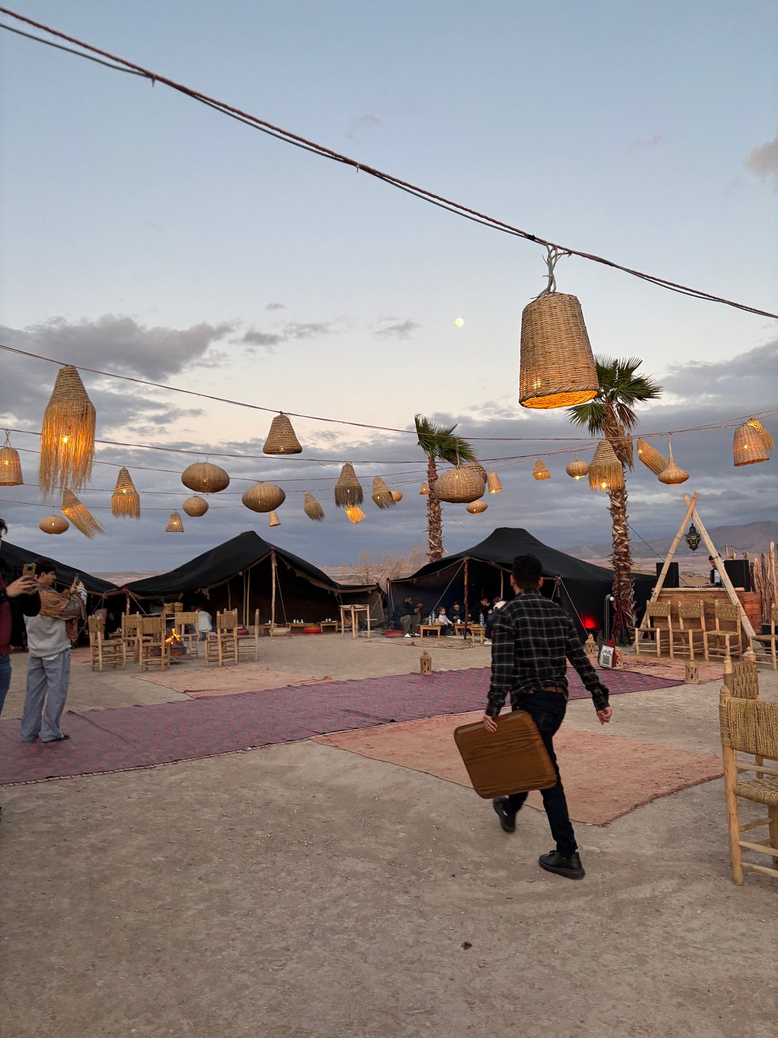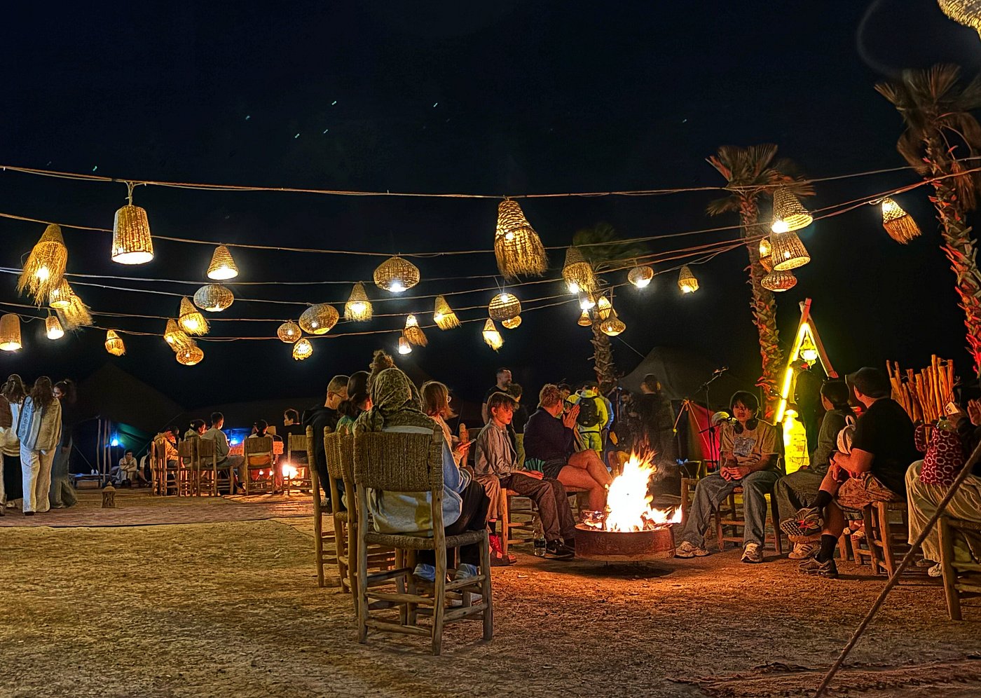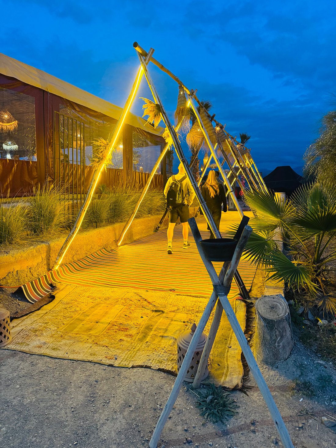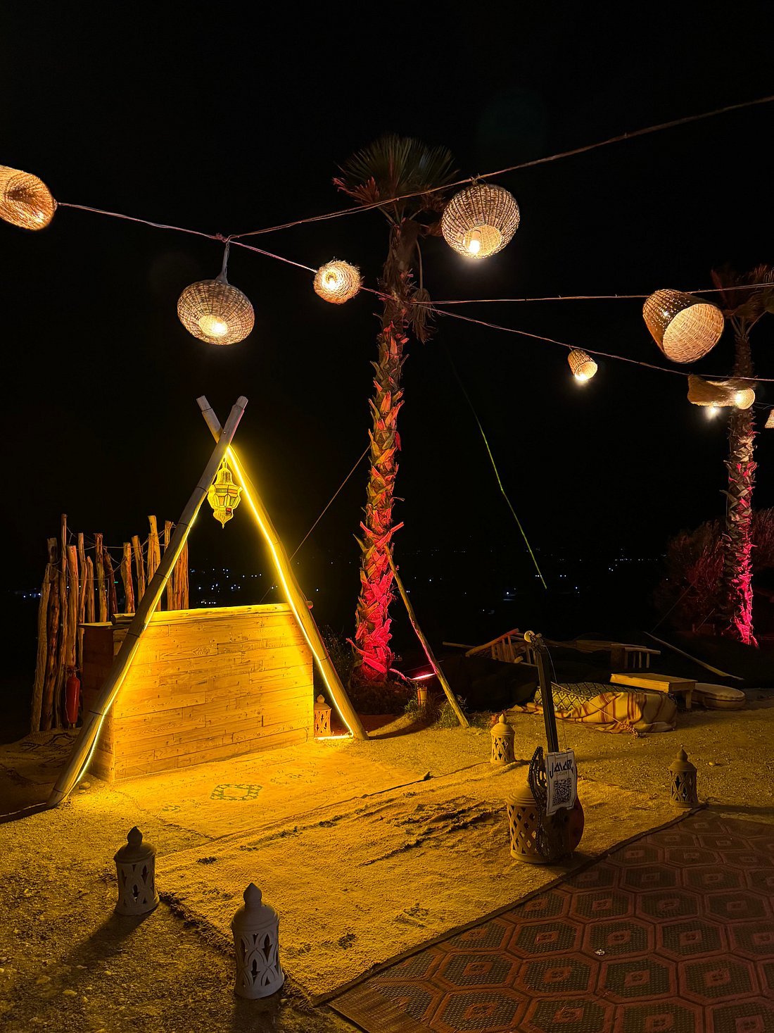 Experience a magical dinner show in the Agafay Desert, just 45 minutes from Marrakech, where the elegance of Moroccan tradition meets the beauty of the desert. Begin your evening with a warm welcome and Moroccan tea at the bivouac, then admire the sunset over the Atlas Mountains before enjoying a refined three-course Moroccan dinner under a Berber tent or on a starlit terrace. The night continues with live entertainment, including belly dancers, Gnawa musicians, fire shows, and drum performances, all complemented by a cozy lounge area with campfires and deckchairs. Optional private transfers ensure a seamless experience, with pick-up from your hotel in modern, air-conditioned 4×4 or SUV vehicles and return after the show. Perfect for couples, families, or groups, this Agafay Desert dinner show offers a unique, authentic Moroccan evening, ideal for celebrating special occasions or simply enjoying an unforgettable night under the stars.