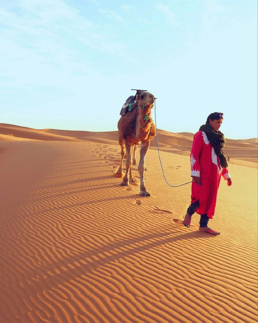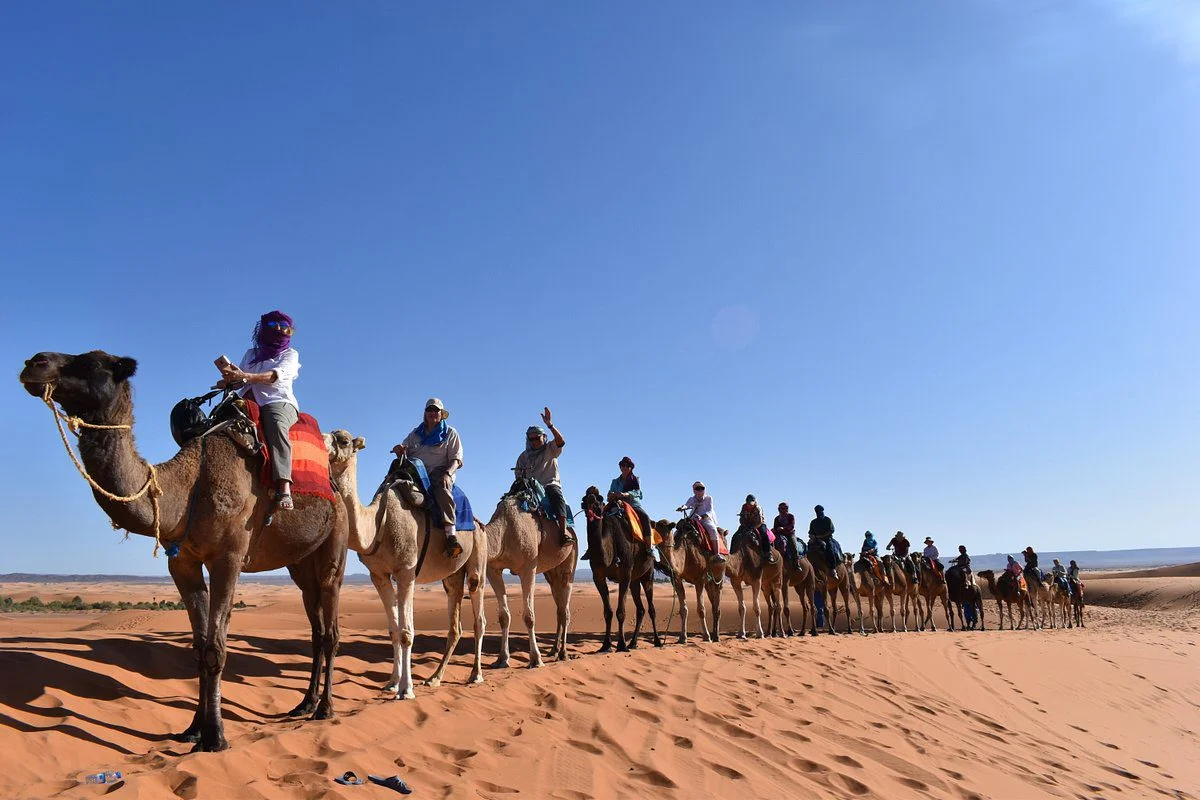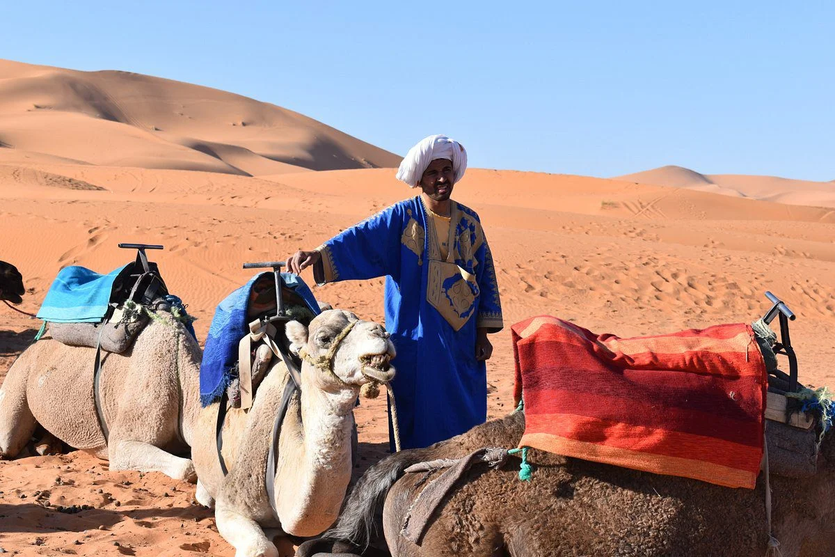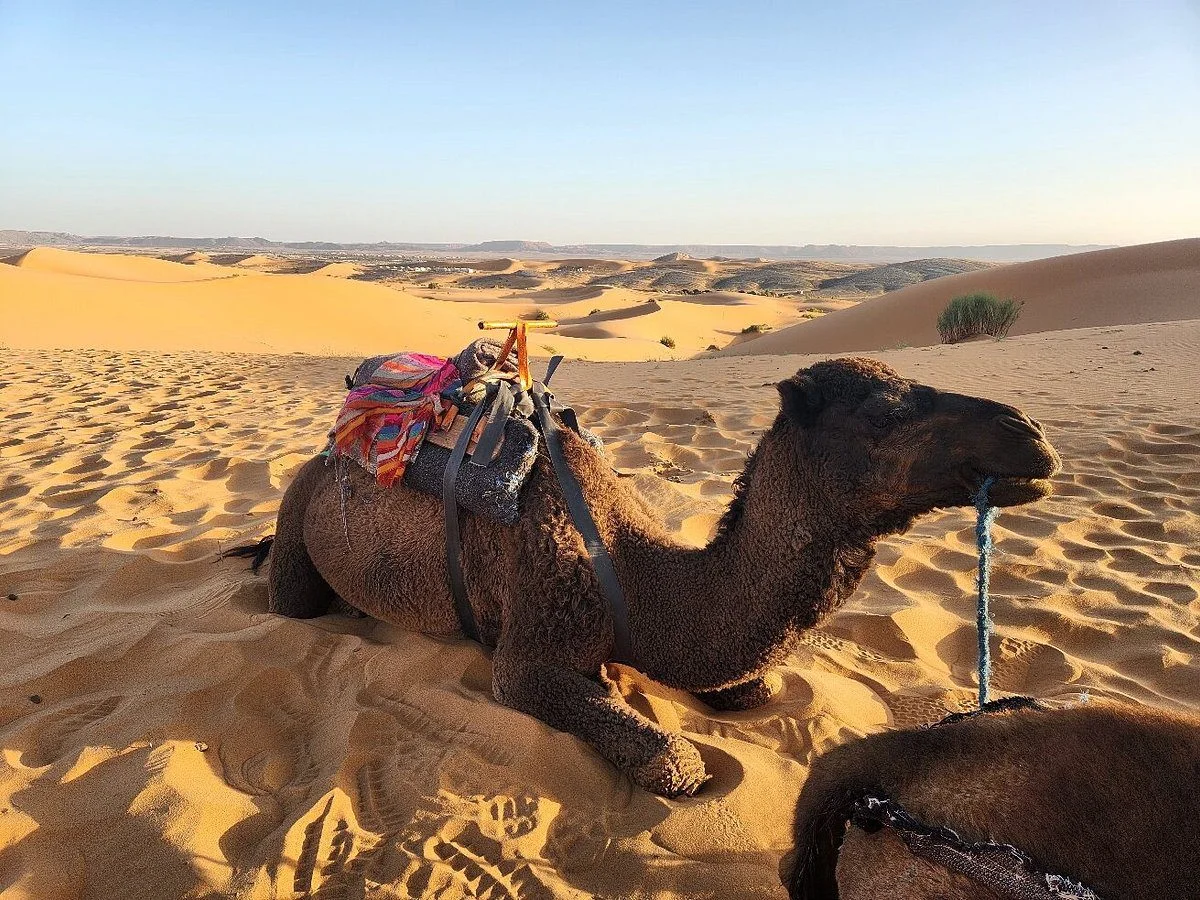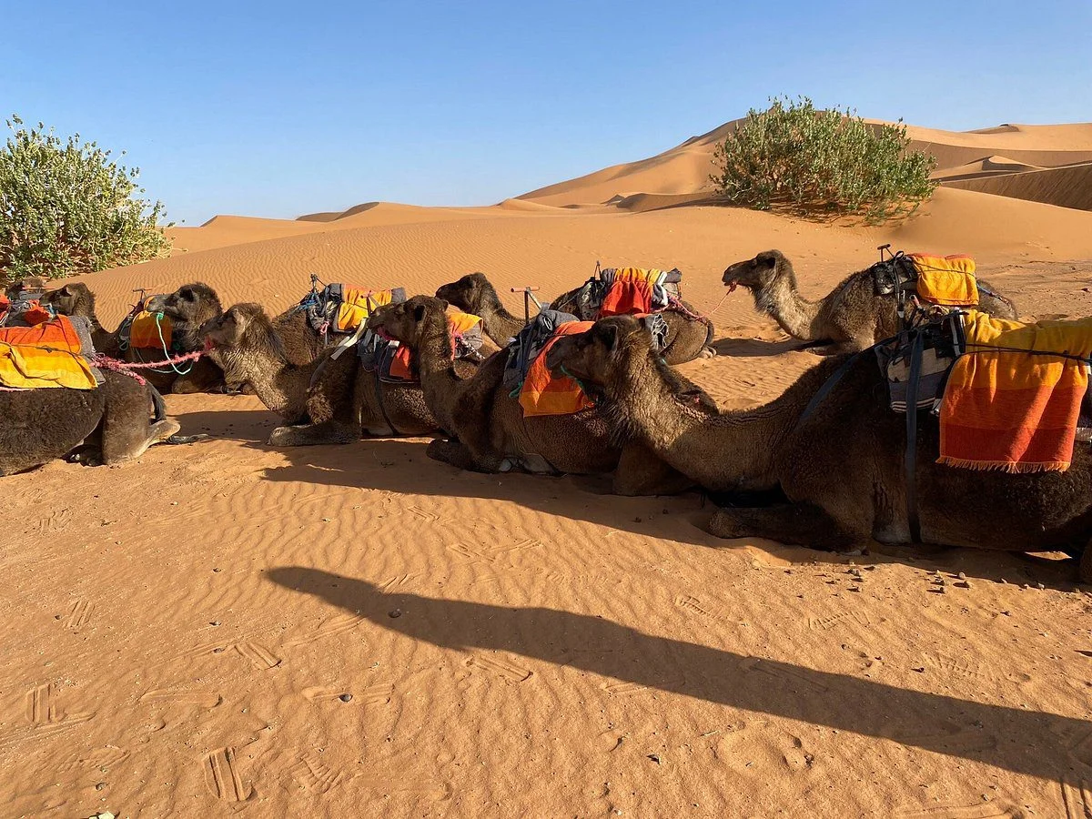 Experience a timeless adventure in the heart of the Sahara Desert: a camel ride across the golden dunes of Merzouga. Between endless skies, serene silence, and Bedouin hospitality, immerse yourself in an authentic journey that takes you away from time. Perfect for families, couples, or friends, this excursion is a must-do during your Morocco trip.