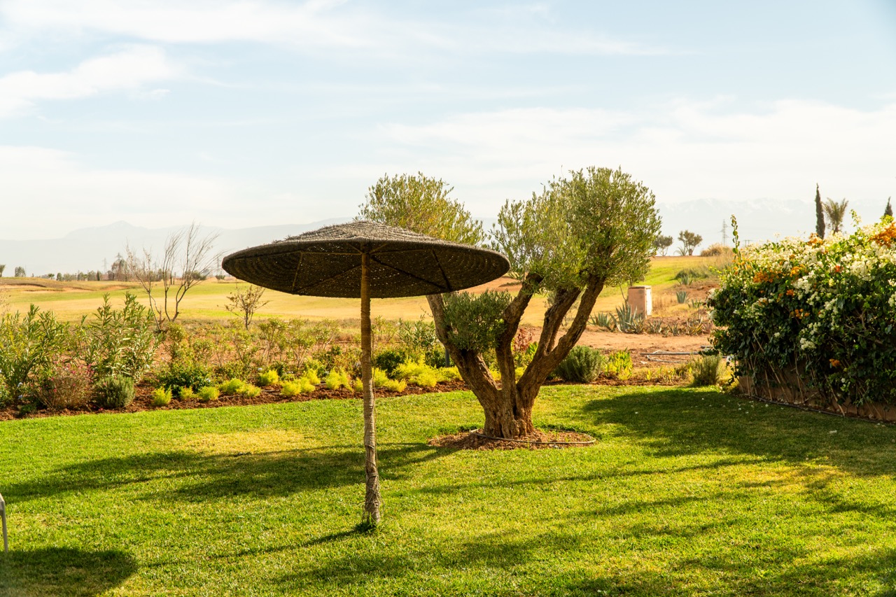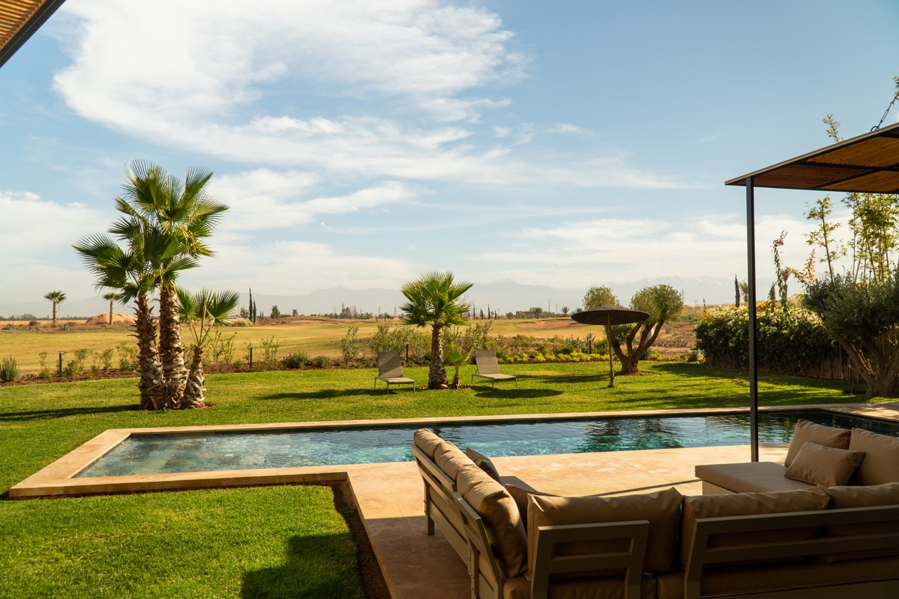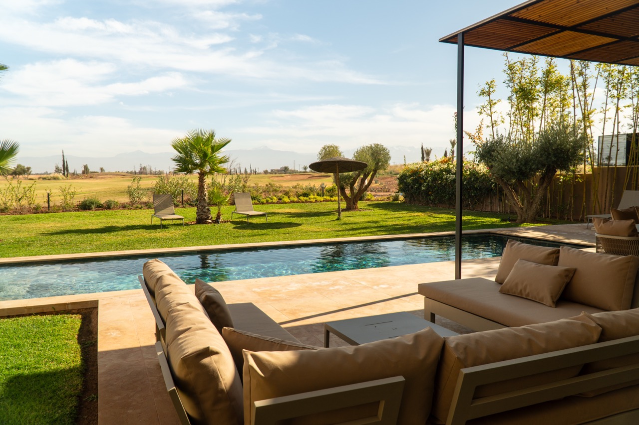 Located in the prestigious Golf Amelkis III, less than 20 minutes from Marrakech city centre, Villa Sampa is a refined luxury retreat offering privacy, comfort, and breathtaking views of the golf course and the Atlas Mountains.