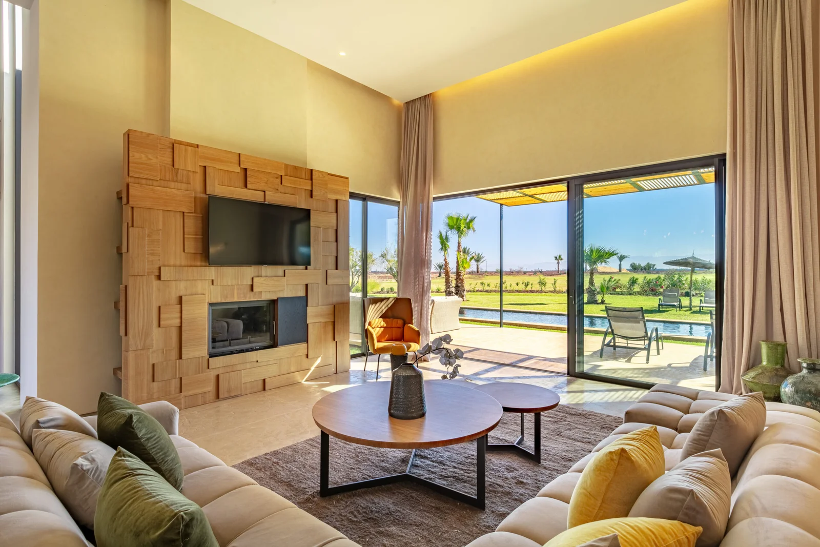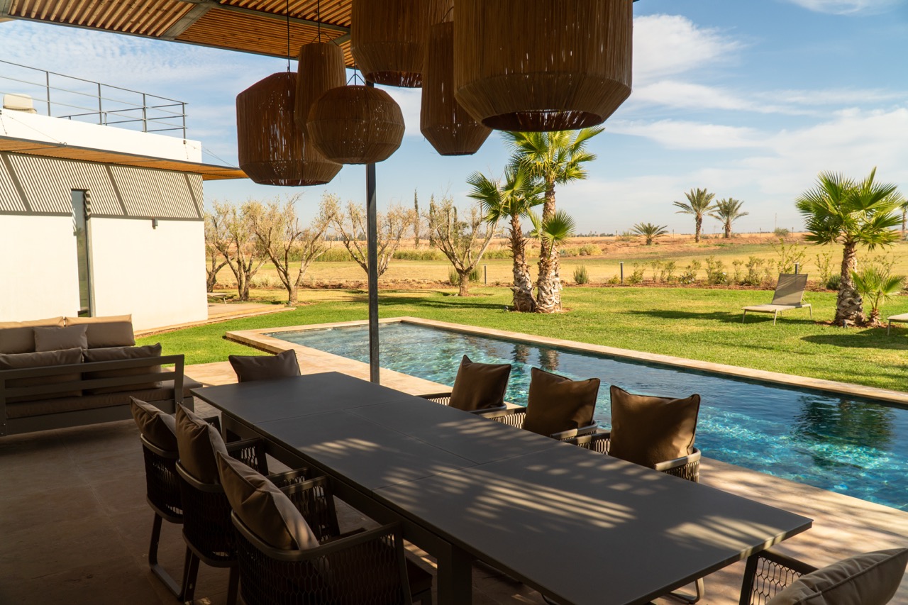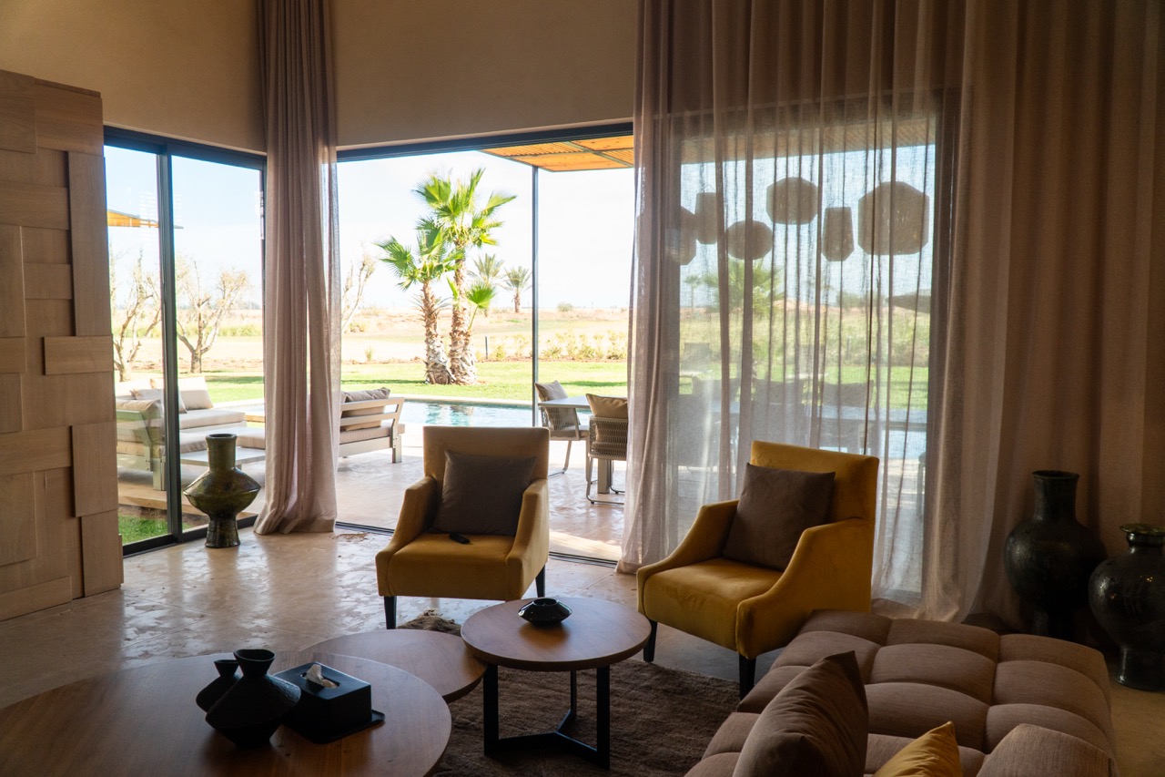 Located in the prestigious Golf Amelkis III, less than 20 minutes from Marrakech city centre, Villa Sampa is a refined luxury retreat offering privacy, comfort, and breathtaking views of the golf course and the Atlas Mountains.