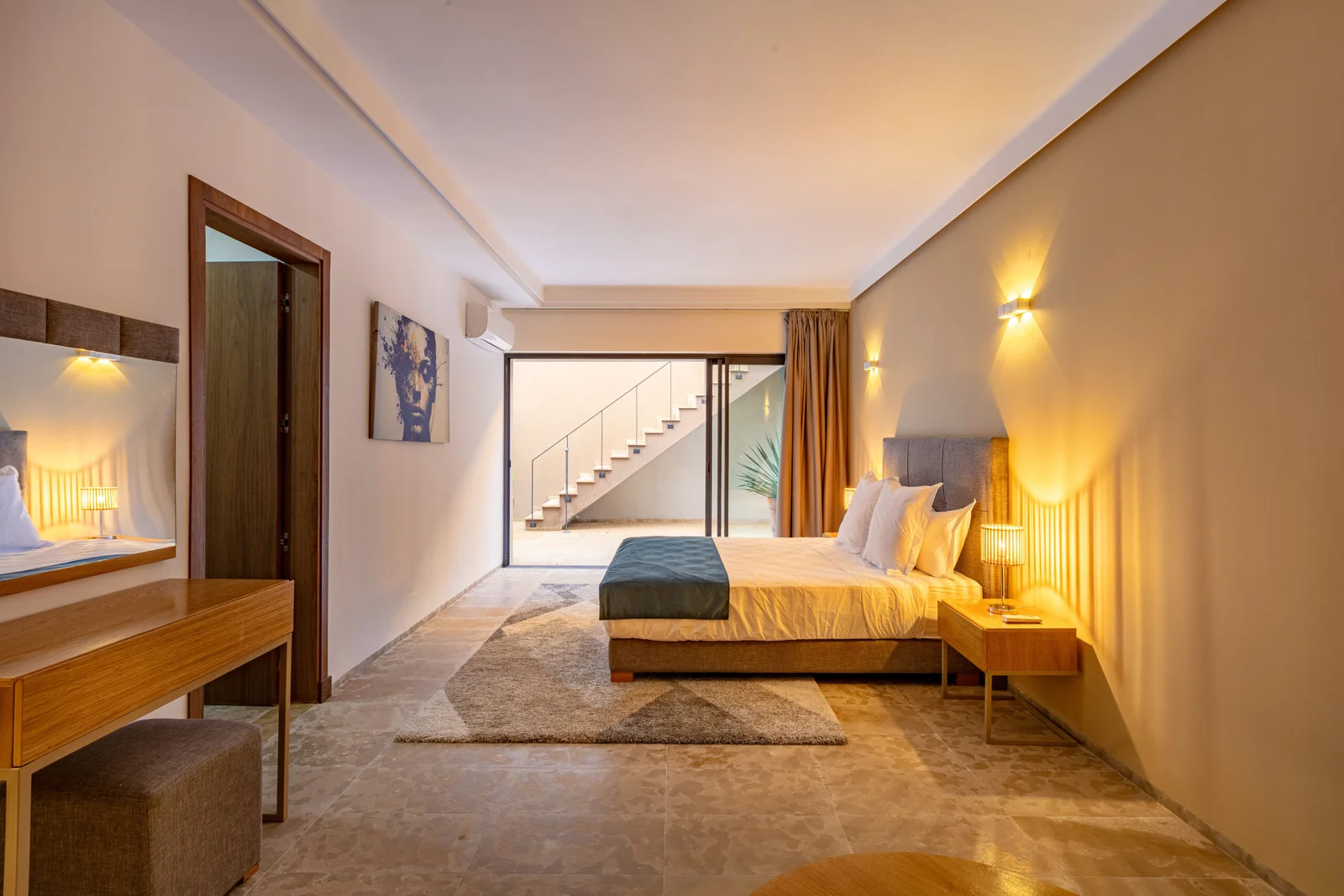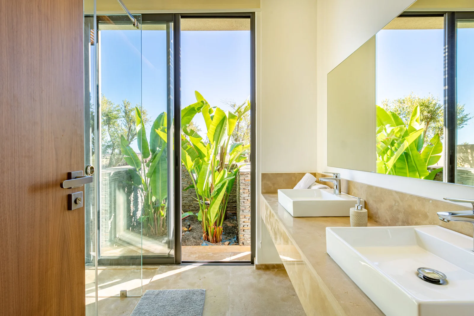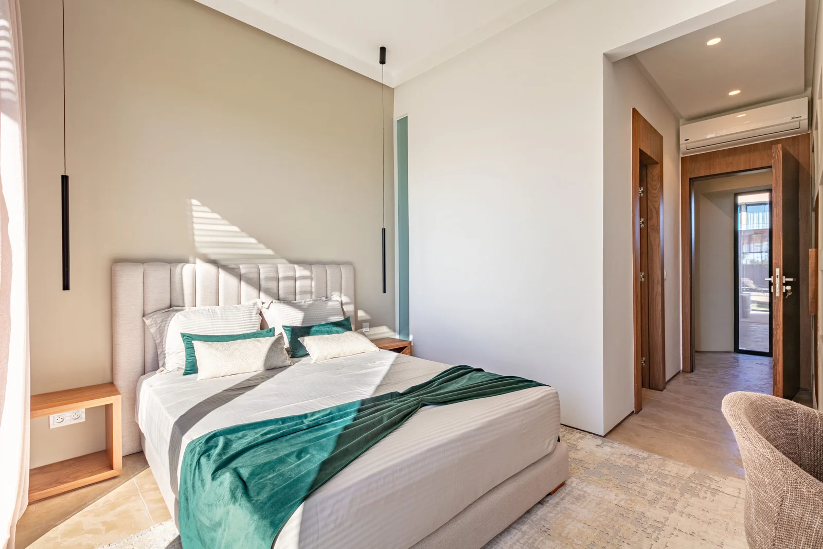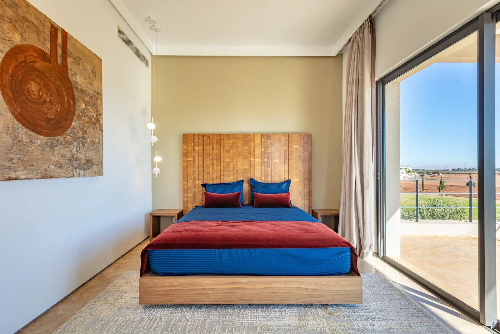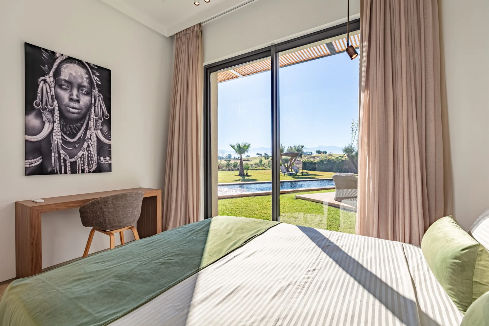 The villa features 5 elegant double bedrooms, each with a private en-suite bathroom, spacious living areas filled with natural light, and a design that blends contemporary style with subtle Moroccan touches.