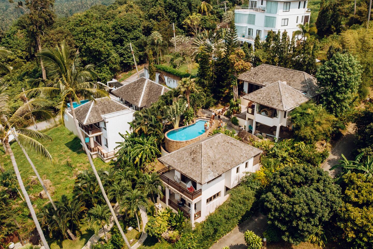 Discover Villa Sawanra, a stunning hilltop retreat located on the west coast of Koh Samui, just 1.5 km from Nathon Pier. This private estate combines tropical charm with modern comfort, offering serenity, privacy, and breathtaking sea views; perfect for families, friends, or small groups seeking an unforgettable escape.