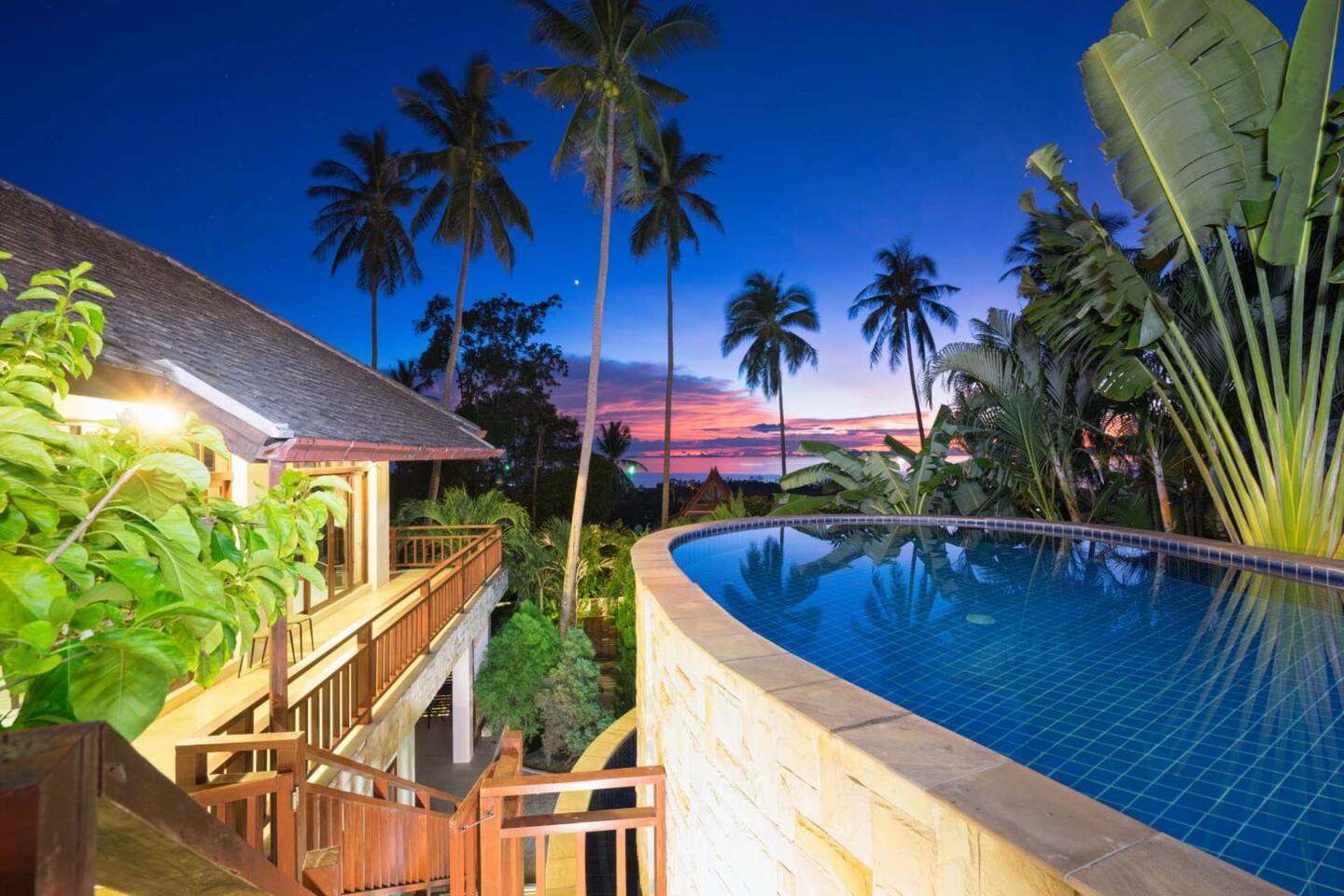 Villa Sawanra offers a rare combination of mountain breeze, clear water from a deep well, and mesmerizing sunsets over the sea, ensuring a peaceful retreat in a tropical paradise.