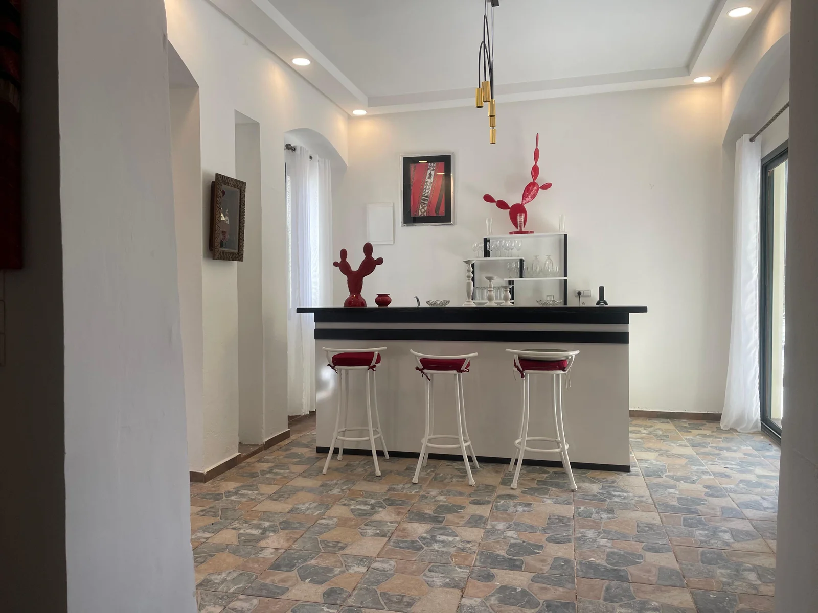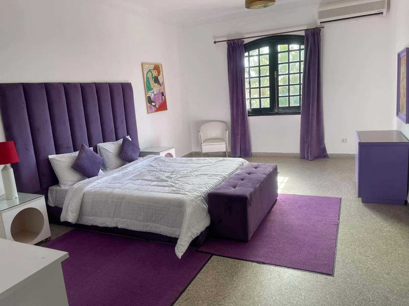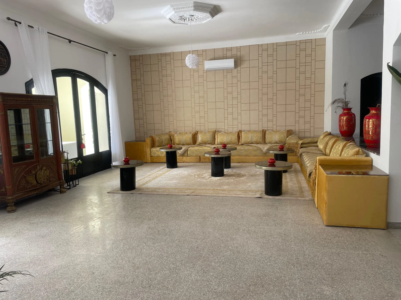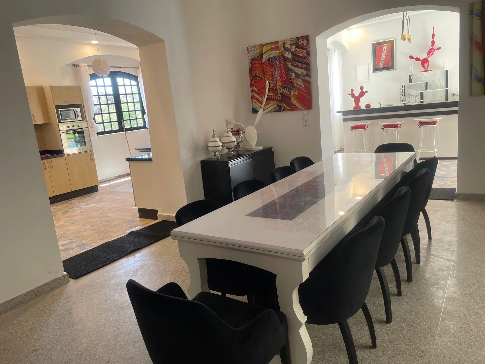 The villa features nine refined suites, each with a private en-suite bathroom, combining modern comfort with traditional Moroccan design. Bright and spacious living areas open onto the garden, creating a warm and inviting setting ideal for families or groups of friends.